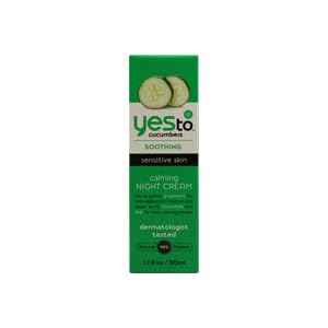 Product Description : Yes To Cucumbers calming night cream is perfect for those looking for a dermatologisttested formula to wear overnight that delivers a gentle, hypoallergenic moisture. This lightweight cream combines relaxationinducing ingredients like chamomile and aloe to help relax and calm your senses. Grapeseed oil is an antioxidant rich emollient to help repair and moisturize skin while you sleep. Sweet almond oil provides hydration and cucumbers provide a gentle, calming, silkysmooth finish to skin. You'll wake up with skin that feels soft, pure and calm.